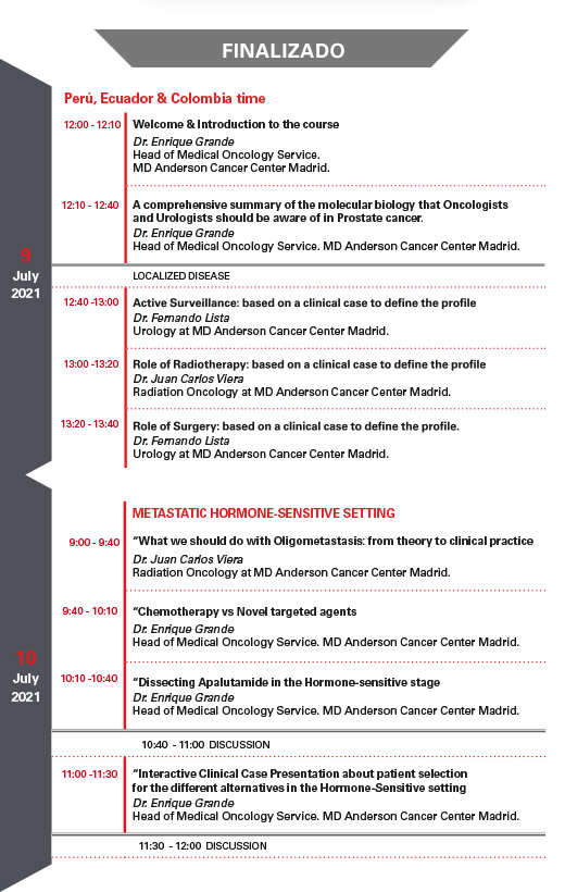 Lugar: Sala Videoconferencias - MD Anderson Cancer Center Madrid - Hospiten